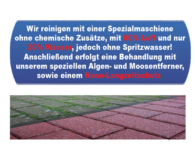 Bei einem Termin direkt bei Ihnen vor Ort auf einer Probefläche, können Sie sich von unserer Arbeit mit eigenen Augen überzeugen und sehen sofortige Ergebnisse. Ob Terrassenplatten oder Naturstein wie Granit und Sandstein, wir sorgen dafür, dass Ihre Außenanlagen schon bald wieder in neuem Glanz erstrahlen.