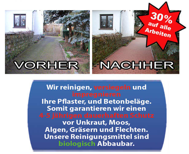 Bei einem Termin direkt bei Ihnen vor Ort auf einer Probefläche, können Sie sich von unserer Arbeit mit eigenen Augen überzeugen und sehen sofortige Ergebnisse. Ob Terrassenplatten oder Naturstein wie Granit und Sandstein, wir sorgen dafür, dass Ihre Außenanlagen schon bald wieder in neuem Glanz erstrahlen.